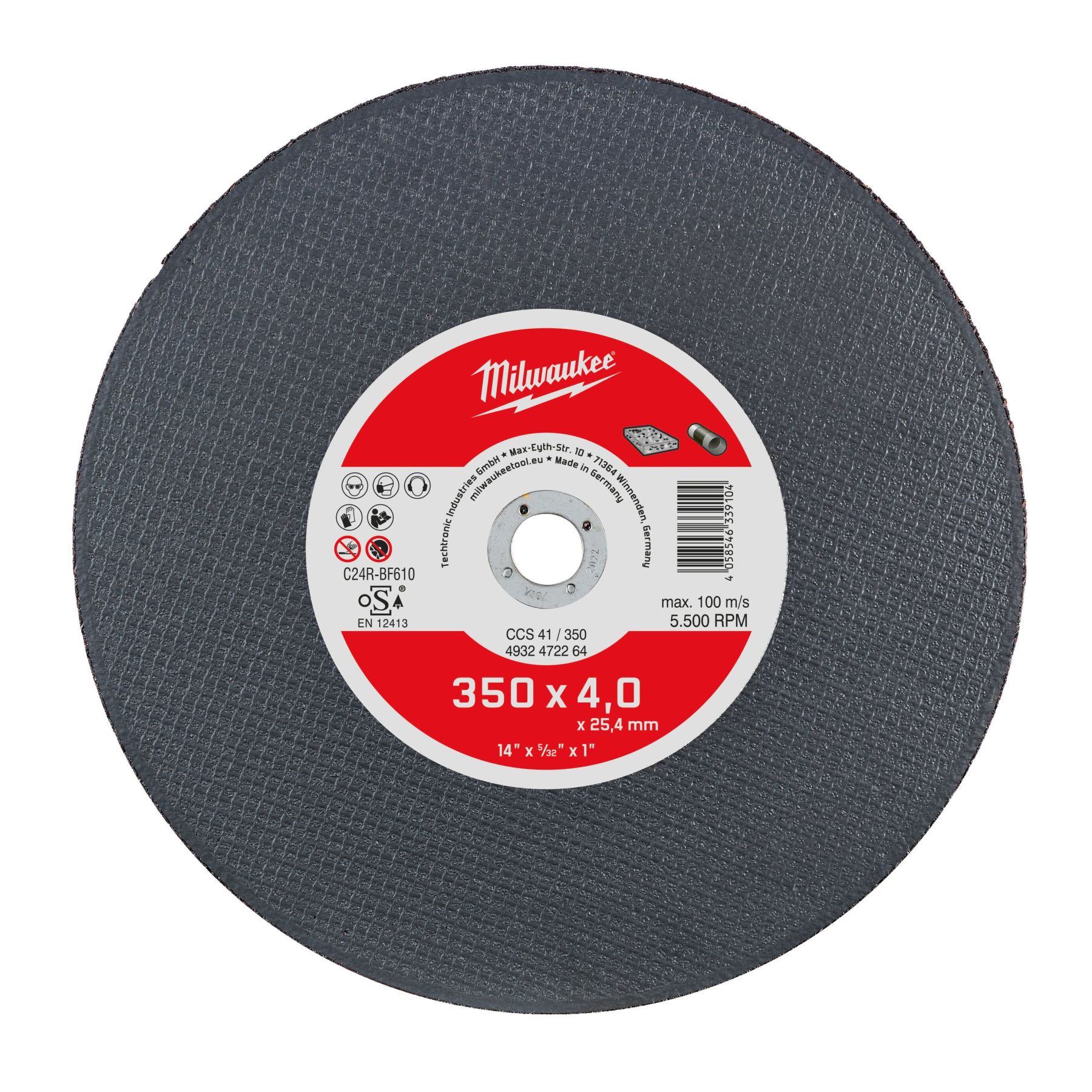 Диск відрізний по каменю та чавуну MILWAUKEE, CCS 41/350х4, Ø350мм