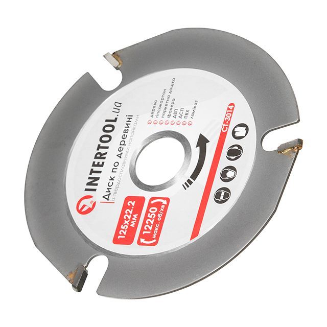 Диск пильный по дереву с твердосплавными напайками 125*22.2 мм, 3Т, на угловую шлифмашину INTERTOOL CT-3014