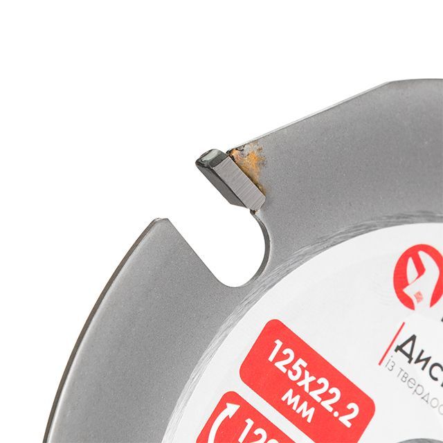 Диск с карбид вольфрамовыми напайками позволяет легко проникать в материал, твердость режущих зубцов достигает до 90 HRC. Обладает устойчивостью к быстрому износу, что уменьшает необходимость в частой замене диска. Также диск способен проделывать рез в древесине с наличием гвоздей, шпилек и пр.