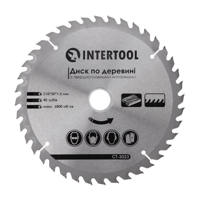 Диск пильный по дереву с твердосплавными напайками 210*30*1.5 мм, 40 зубьев INTERTOOL CT-3023