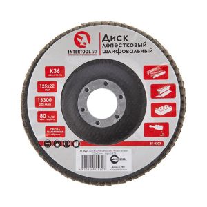 Диск шлифовальный лепестковый 125*22 мм, K36 INTERTOOL BT-0203