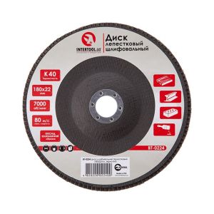 Диск шлифовальный лепестковый 180*22 мм, K40 INTERTOOL BT-0224