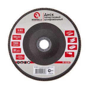 Диск шлифовальный лепестковый 180*22 мм, K80 INTERTOOL BT-0228
