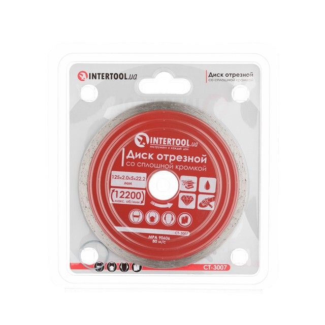 Диск отрезной со сплошной кромкой 125 мм, алмазный 22-24% INTERTOOL CT-3007