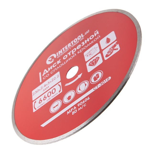 Диск отрезной со сплошной кромкой 230 мм, алмазный 22-24% INTERTOOL CT-3010