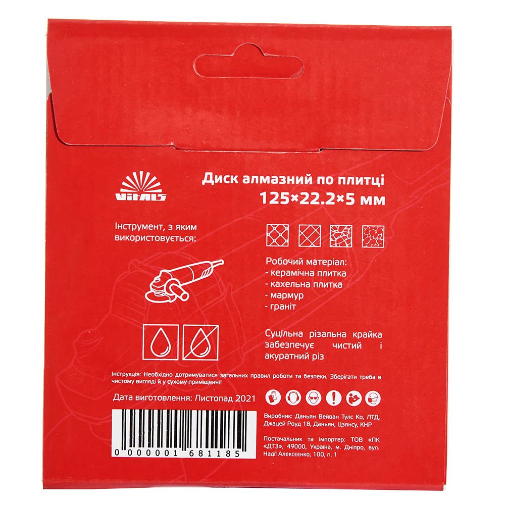 Опис алмазного диску Vitals по плитці 125х22.2х5 мм