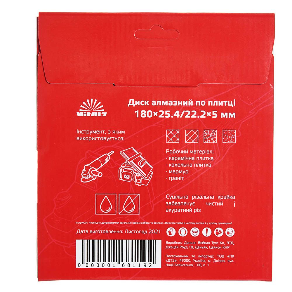 Опис алмазного диску Vitals по плитці180х25.4/22.2х5 мм