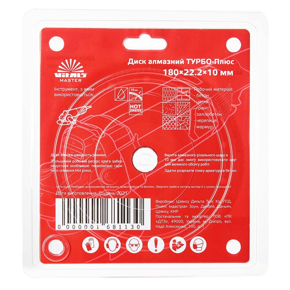 Диск алмазний Vitals Master ТУРБО-Плюс 180×22,2×10 мм