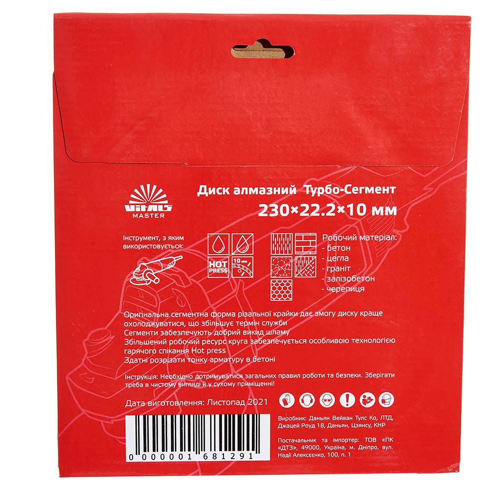 Диск алмазний Vitals Master Турбо-Сегмент 230×22.2×10 мм