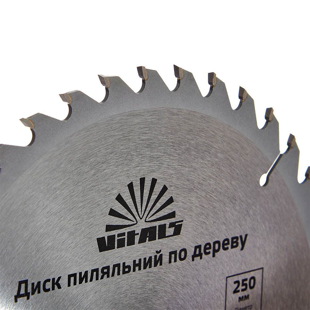 Пиляльний диск Vitals по дереву 250x30/25.4, ATB 40 підходить для поздовжнього та поперечного розпилу деревини - як м'якої, так і твердої породи, а також ДВП, ДСП.