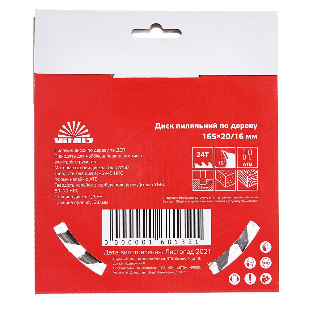 Опис пиляльного диску Vitals по дереву 165х20/16, ATB 24
