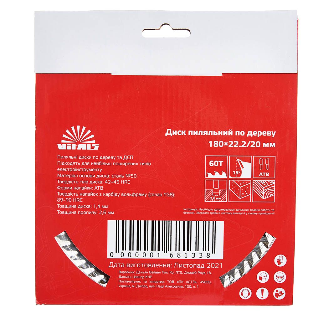 Опис пиляльного диску Vitals по дереву 180x22.2/20, ATB 60