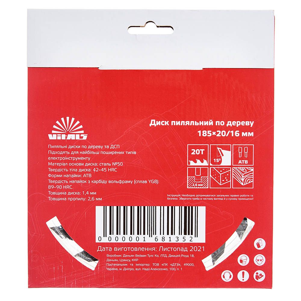 Опис пиляльного диску Vitals по дереву 185x20/16, ATB 20