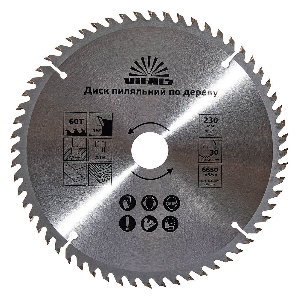 Опис пиляльного диску Vitals по дереву 230x30/25.4/22.2, ATB 60