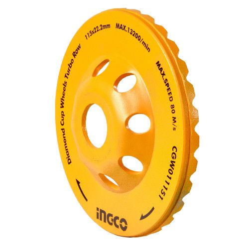 Диск Турбо шліфувальний чашковий 115 мм INGCO призначений для шліфування поверхонь з каменю, бетону, мармуру, граніту, як робочий елемент для кутової шліфувальної машини.