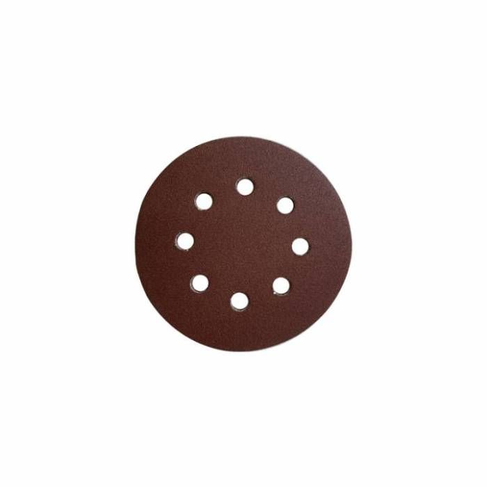 | Шліфувальний диск фіксується на м'якій гумовій основі робочої поверхні платформи за допомогою зручної системи «липучка». Шліфувальний диск з отворами, діаметром 125 мм та зернистістю Р100. Призначений для обробки дерева, фанери, металу, пластмаси, паркету, поверхонь з фарбою, лаком, шпаклівкою, інших матеріалів різної щільності. |
