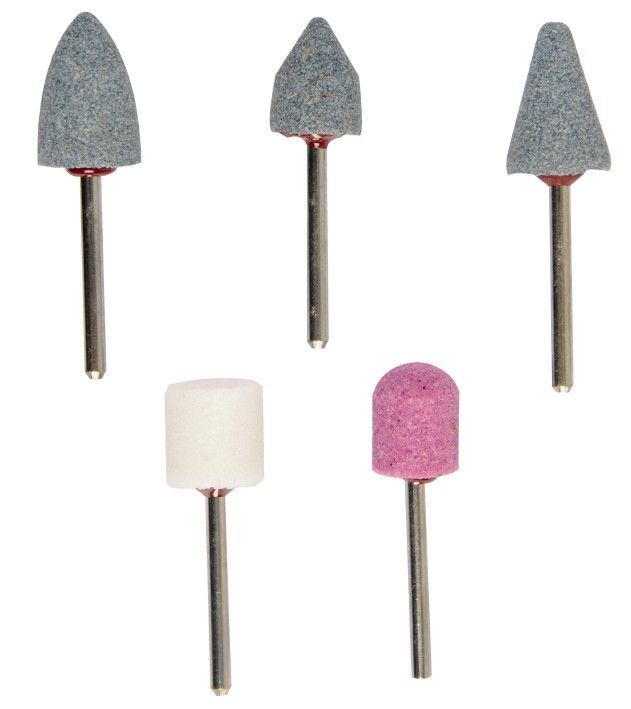 Керамические мини-шлиффрезы, набор, из 5-ти предметов, для удаления заусенцев, сглаживания сварных швов, чистовой шлифовки поверхностей, для работы по металлу, стеклу, керамике и пластику, для установки в мини-электродрели и гибкие валы.