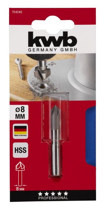 Зенкер по дереву и цветному металлу, 8 мм, HSS, KWB (704240)