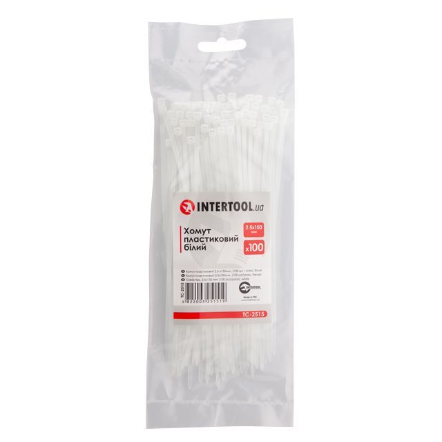Хомут пластиковый 2,5*150 мм, белый, 100 ед. INTERTOOL TC-2515