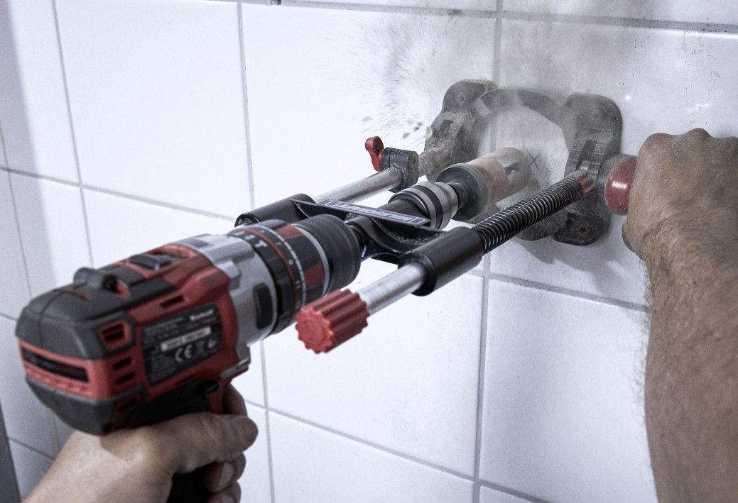 Сверлильная стойка с зубчатым сверлильным патроном ⅜″ и валом для дрелей с патроном ½″ и ⅜″. Нескользящая металлическая основа с резиновыми ножками, шкала с четким обозначением угла, V-образные пазы для центровки круглых предметов, дополнительная рукоятка и отверстия для длительного крепления специальных устройств. Для сверления прямых или наклонных проемов в стенах или круглых предметах. Диапазон регулировки 45°-90°. Основание сверлильной стойки размером 140 x 110 мм изготовлено из литого алюминия и устойчиво стоит на 4 прочных резиновых упорах.