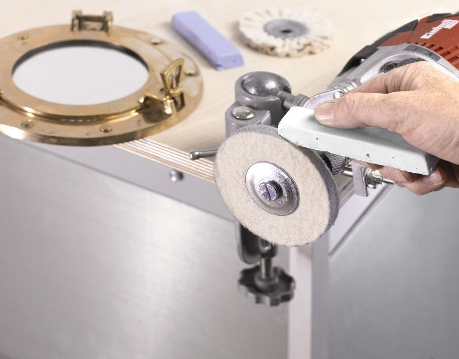 Войлочный полировальный круг, для применения с зажимной оправкой на стандартных электродрелях и аккумуляторных дрелях, для нанесения политур и восков на дерево, металл, пластик, мрамор, стекло, акрил и автолак. Внешний диаметр 75 мм, внутренний диаметр 13 мм.