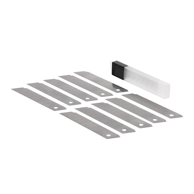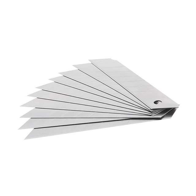 Большой запас лезвий: в одной упаковке 10 лезвий по 7 сегментов, шириной 18 мм. Используются в качестве расходной части для строительных, канцелярских и малярных ножей. Изготовлены из высокоуглеродистой стали, имеют высокую прочность, даже в форме тонкого острия.