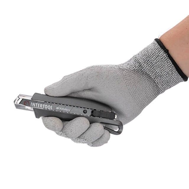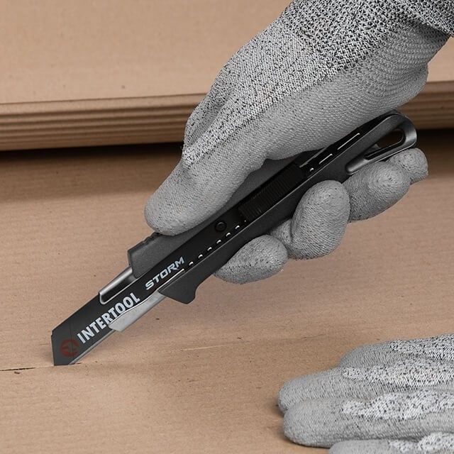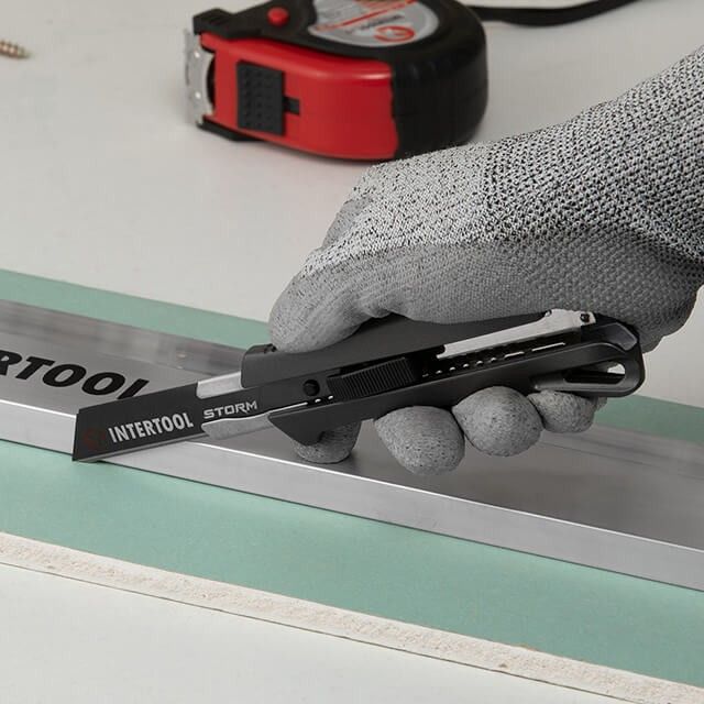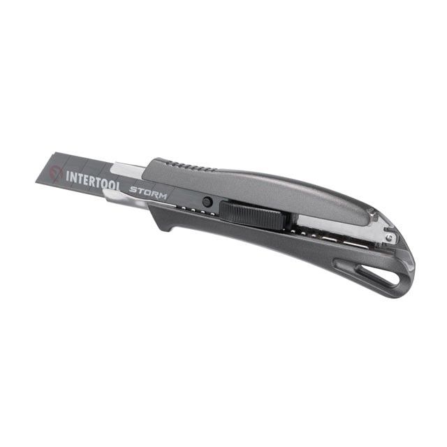 Нож сегментный 18 мм, алюминиевая рукоятка, металлическая направляющая, STORM INTERTOOL HT-0534