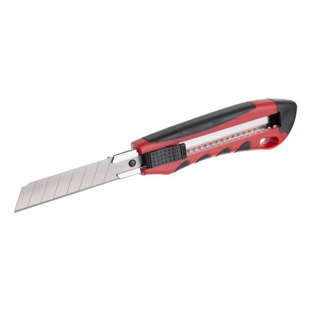 Нож с 18 мм сегментным лезвием, применяется на стройках, складах, а также в домашней и офисной работе. Без особых усилий справляется с монтажной пеной, обоями, скотчем, плёнкой, бумагой и др.