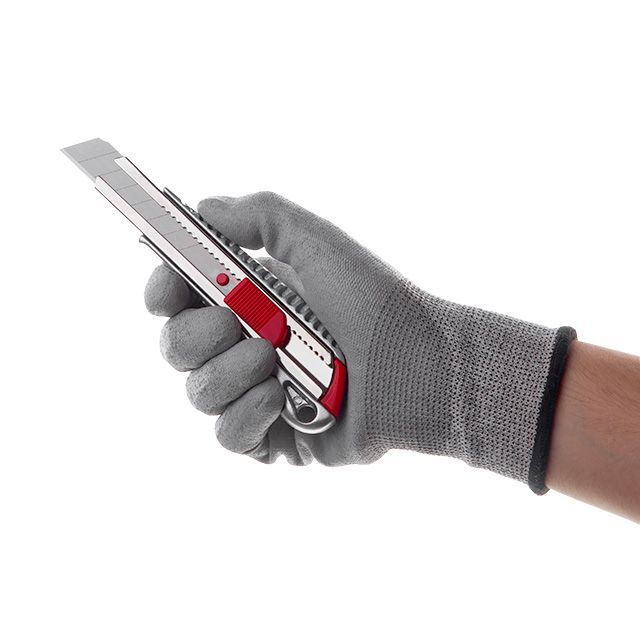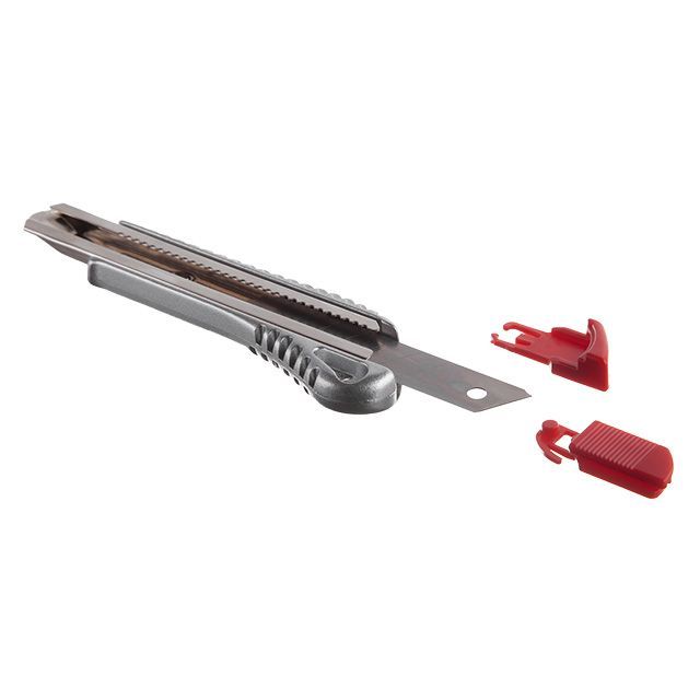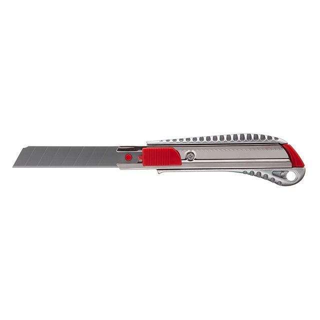 Оснащен линейным фиксатором для выдвижения и фиксации лезвия. Перфорированная поверхность корпуса против скольжения в руках.