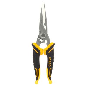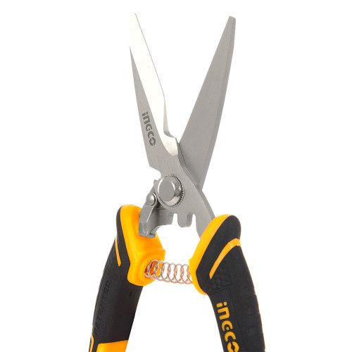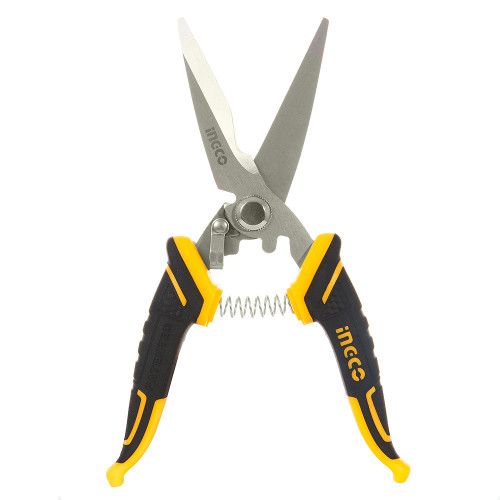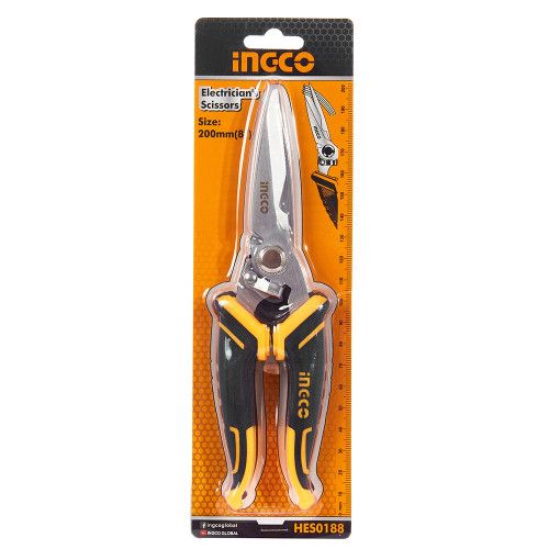 Універсальні ножиці 200 мм INGCO HES0188 мають зазубрене лезо з нержавіючої сталі. Цей зручний ручний інструмент придатний для різання найрізноманітніших матеріалів.