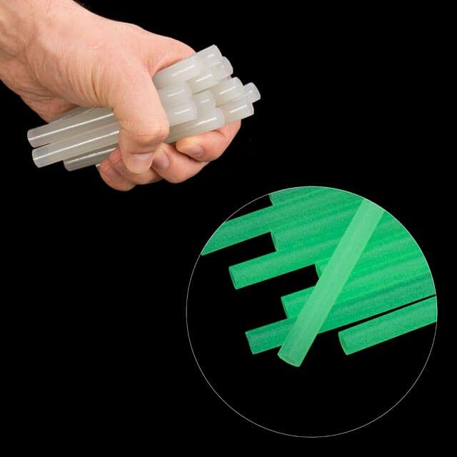 Флуоресцентные термоклеевые стержни обладают уникальным свойством, они светятся в темноте зеленым светом! Их еще часто называют люминесцентным или самосветящимся клеем.