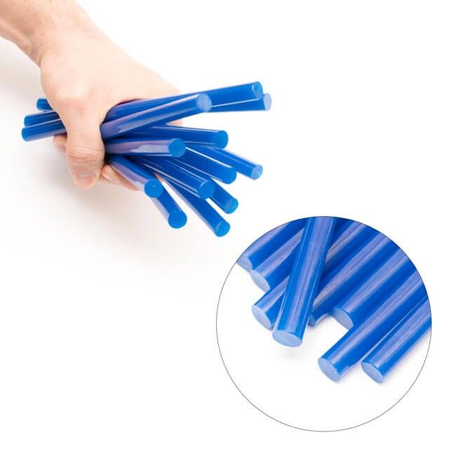 Клеевые стержни голубого цвета, подходят для различных задач. Диаметр стержня 11,2 мм - один из самых распространенных и популярных размеров. Сам стержень, длиной 200 мм, в упаковке 12 стержней.