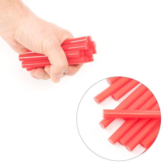 Клеевые стержни красного цвета, подходят для различных задач. Диаметр стержня 11,2 мм - один из самых распространенных и популярных размеров. Сам стержень, длиной 100 мм, в упаковке 12 стержней.