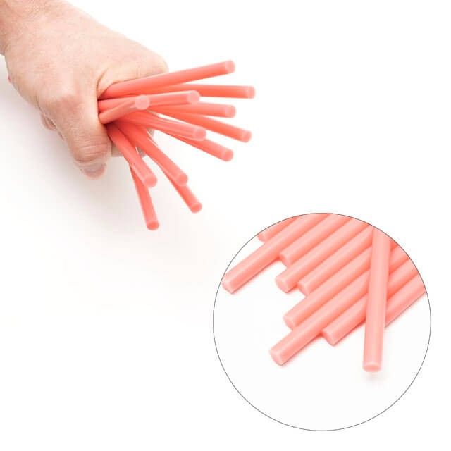 Клеевые стержни розового цвета, подходят для различных задач. Диаметр стержня 7,4 мм - один из самых распространенных и популярных размеров. Сам стержень, длиной 200 мм, в упаковке 12 стержней.