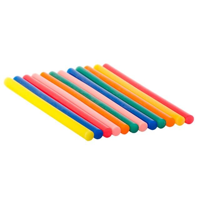 Клеевые стержни разных цветов универсальные, подходят для различных задач. В комплекте 6 цветов: синий, зеленый, оранжевый, красный, желтый, розовый. Диаметр стержня 11,2 мм - один из самых распространенных и популярных размеров. Сам стержень, длиной 200 мм, в упаковке 12 стержней.