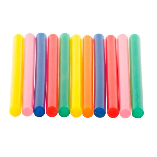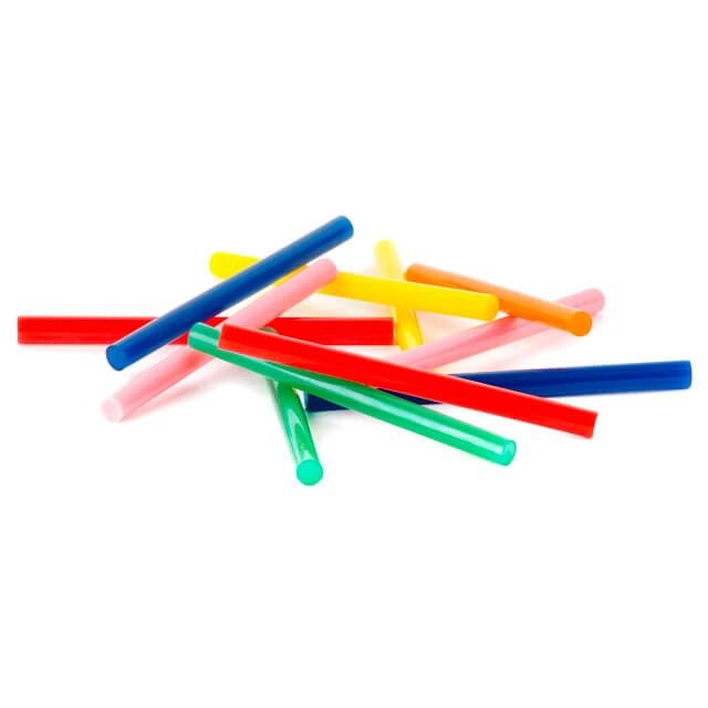 Клеевые стержни разных цветов универсальные, подходят для различных задач. В комплекте 6 цветов: синий, зеленый, оранжевый, красный, желтый, розовый. Диаметр стержня 7,4 мм - один из самых распространенных и популярных размеров. Сам стержень, длиной 100 мм, в упаковке 12 стержней.