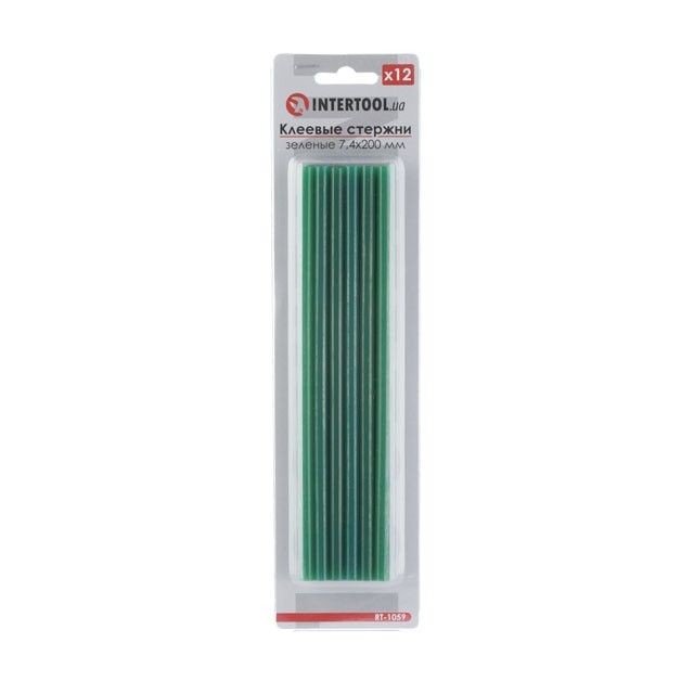 Комплект зеленых клеевых стержней 7.4мм*200мм, 12шт. INTERTOOL RT-1059