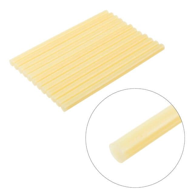 Клеевые стержни желтого цвета, подходят для различных задач. Диаметр стержня 11,2 мм - один из самых распространенных и популярных размеров. Сам стержень, длиной 200 мм, в упаковке 12 стержней.