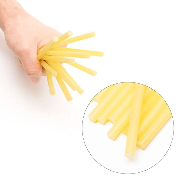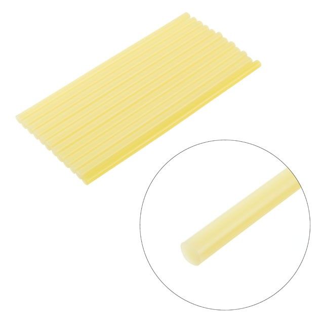 Клеевые стержни желтого цвета, подходят для различных задач. Диаметр стержня 7,4 мм - один из самых распространенных и популярных размеров. Сам стержень, длиной 200 мм, в упаковке 12 стержней.