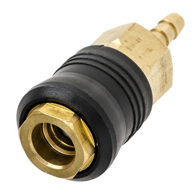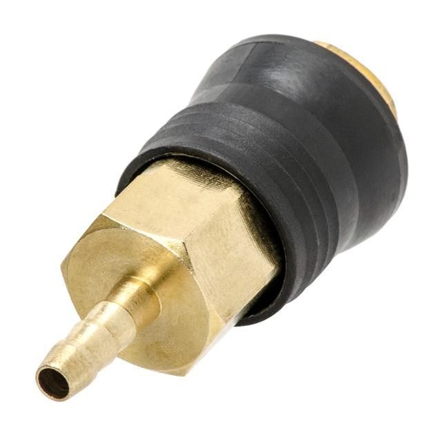 Соединение изготовлено из латуни с удобной накладкой из ABS пластика. Быстроразъем PT-1811 с клапаном "мама" универсального типа, подходит для быстросъемных соединений "папа" любых видов. С другой стороны фитинг оснащен "елочкой", размером 6 мм.