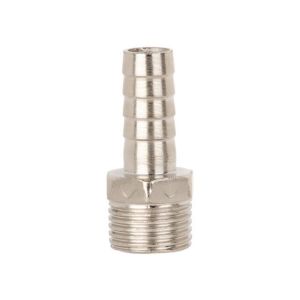 Переходник изготовлен из хромированной стали, он прочный и износостойкий. Для дополнительной фиксации соединения типа "елочка" лучше использовать хомут поверх шланга.