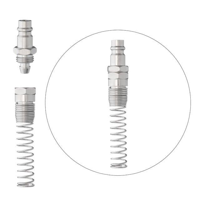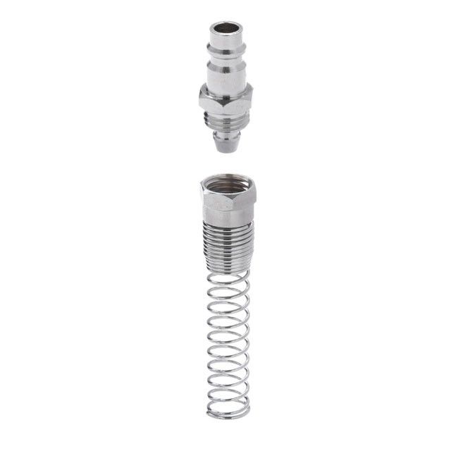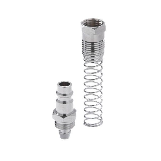 Ответная часть для быстросъемного соединения с пружиной используется для установки на спиральные и прямые воздушные шланги, чтобы обеспечить быстрое подключение пневмоинструмента к компрессору или воздушной магистрали. Также их используют для ремонта шлангов с повреждениями и для заменены вышедших из строя коннекторов.
