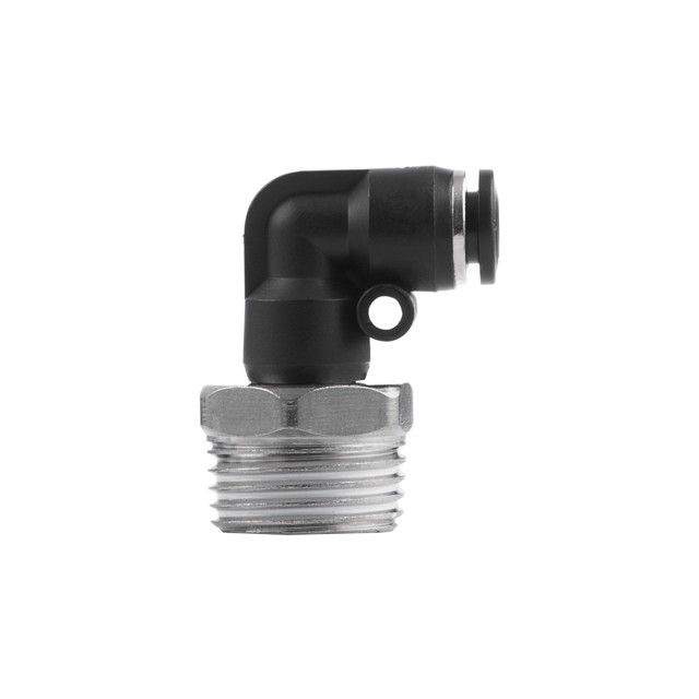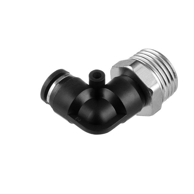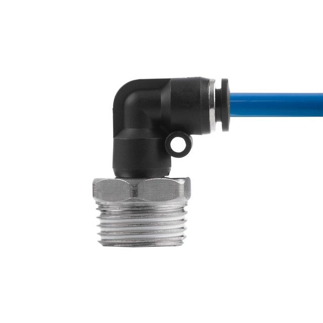 Цанговое соединение L-образной формы применяется при создании пневматических магистралей и для монтажа пневмосистем. Обеспечивает полностью герметичное соединение различных пневматических шлангов без повреждения их поверхности (PU, PE, PA) - полиуретановых, полиэтиленовых, полиамидных и пр.