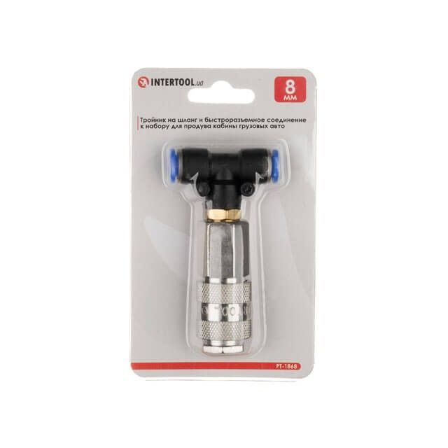 Тройник на шланг 8мм и быстроразъемное соединение к набору для продува кабины грузовых авто INTERTOOL PT-1868