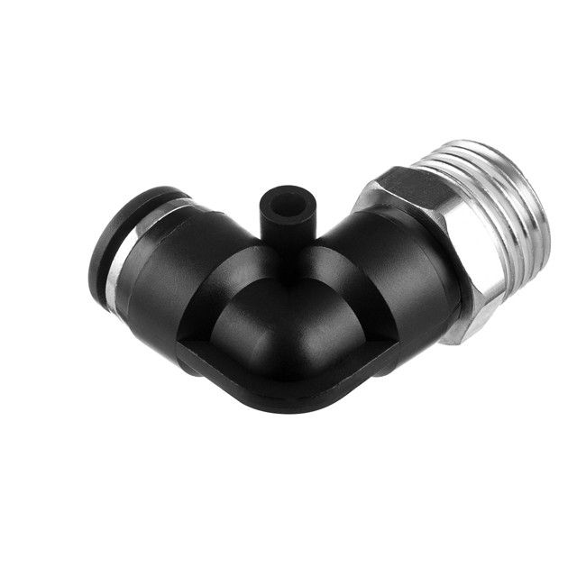 Цанговое соединение L-образной формы применяется при создании пневматических магистралей и для монтажа пневмосистем. Обеспечивает полностью герметичное соединение различных пневматических шлангов без повреждения их поверхности (PU, PE, PA) - полиуретановых, полиэтиленовых, полиамидных и пр.