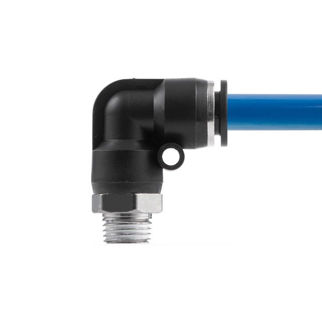 Цанговое соединение L-образной формы применяется при создании пневматических магистралей и для монтажа пневмосистем. Обеспечивает полностью герметичное соединение различных пневматических шлангов без повреждения их поверхности (PU, PE, PA) - полиуретановых, полиэтиленовых, полиамидных и пр.