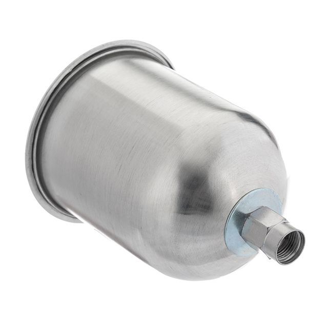 Этот металлический бачок предназначен для использования с пистолетами системы HVLP, LVLP, HP, оборудован внутренней резьбой M16x1,5. Объем бачка составляет 600 мл, вмещает достаточное количество материала для проведения различный покрасочных работ.