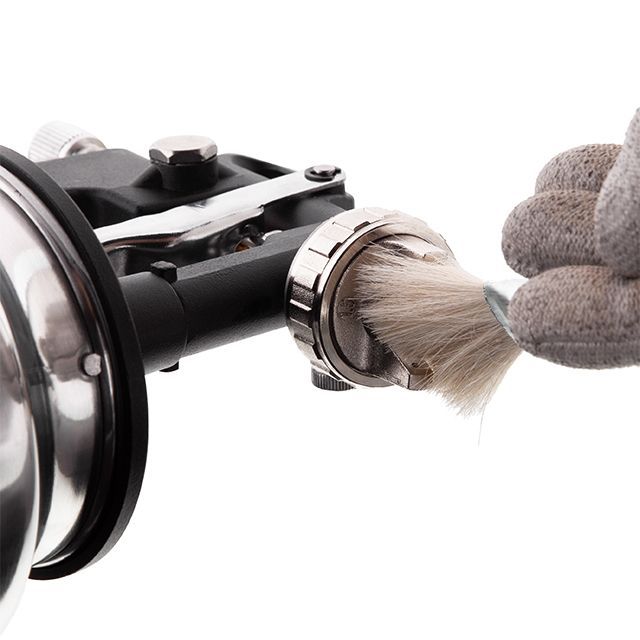 Он универсальный и предназначен для очищения инструментов различных систем распыления, будь то HP, HVLP, LVLP, LVMP, HVLPII. Он портативный и прочный, изготовлен в основном из металла.