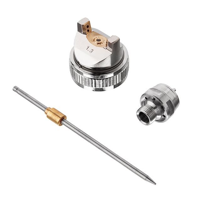 Набор форсунки PT-2000 позволяет возобновить работу краскопульта, а также может увеличить функционал работающего, за счет диаметра форсунки 1.3 мм. Набор специально разработан для краскопультов HVLP. Этот комплект включает в себя три важных элемента: дюзу, воздушную головку и иглу, предоставляя полный инструментарий для качественного нанесения краски.
