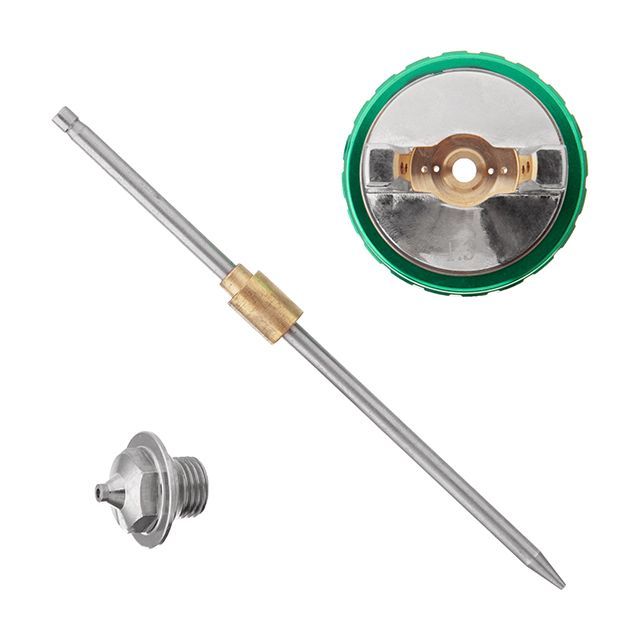 Набор форсунки PT-2013 позволяет возобновить работу краскопульта, а также может увеличить функционал работающего, за счет диаметра форсунки 1,3 мм. Набор специально разработан для краскопультов LVLP. Этот комплект включает в себя три важных элемента: дюзу, воздушную головку и иглу, предоставляя полный инструментарий для качественного нанесения краски.